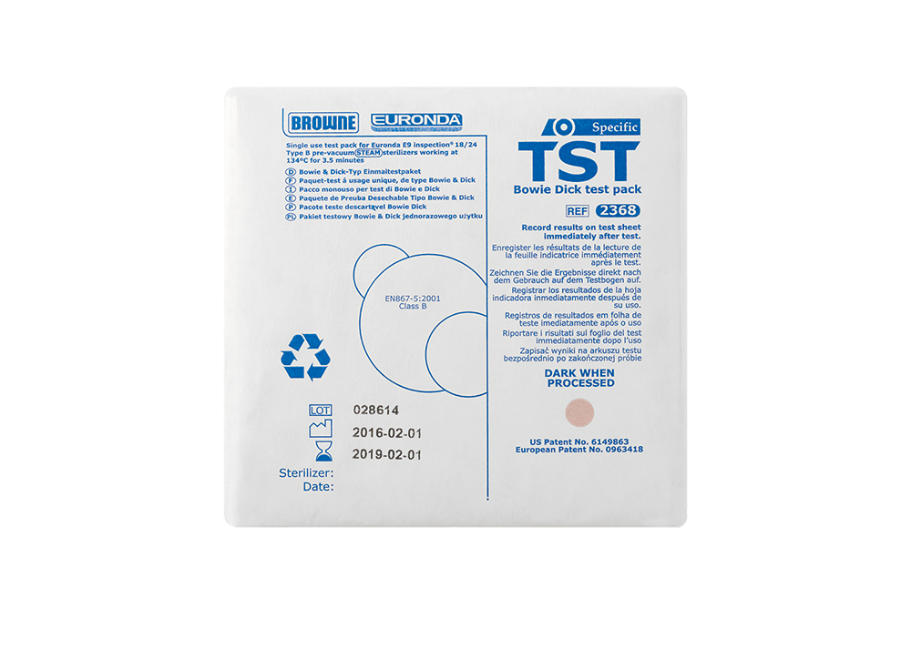 Test de control para autoclaves de clase B. Conforme con la norma ISO 11140-1:2005 clase 6. Calibrado según parámetros de temperatura, tiempo y presión considerados eficaces en la esterilización de ciclos 134 ° Prion. (134 ° durante 18 minutos). Formado por 200 viradores de control.